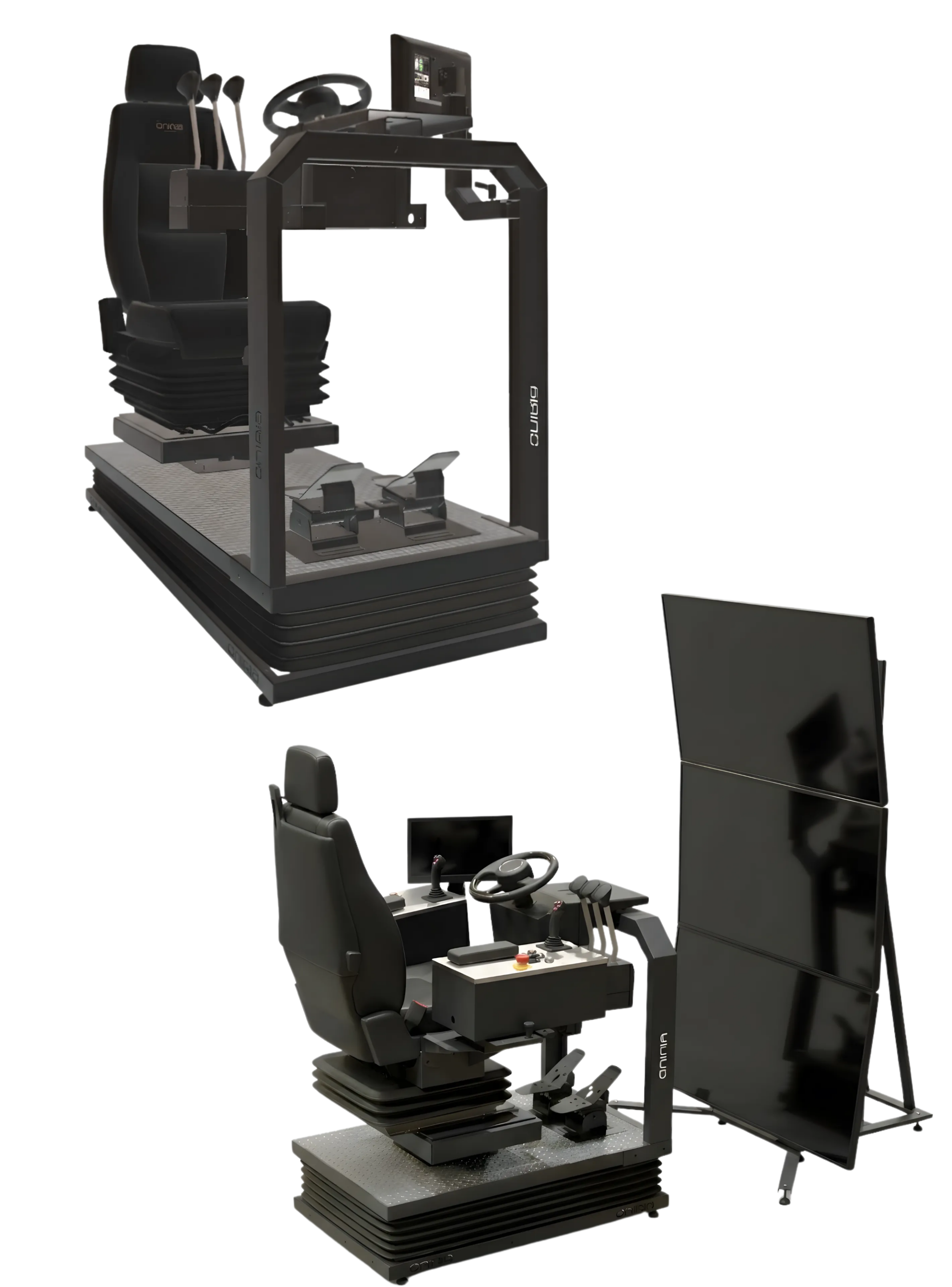 Controles e joysticks integrados diretamente ao assento para garantir a postura correta e eliminar vícios operacionais.